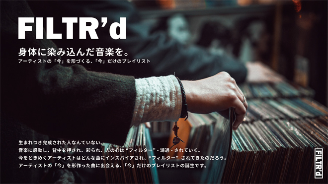 グローバルプレイリストブランド、Filtr(読み:フィルター)の日本版であるFiltr Japanが、新しい更新型プレイリスト「FILTR’d(フィルタード)」を発表した。