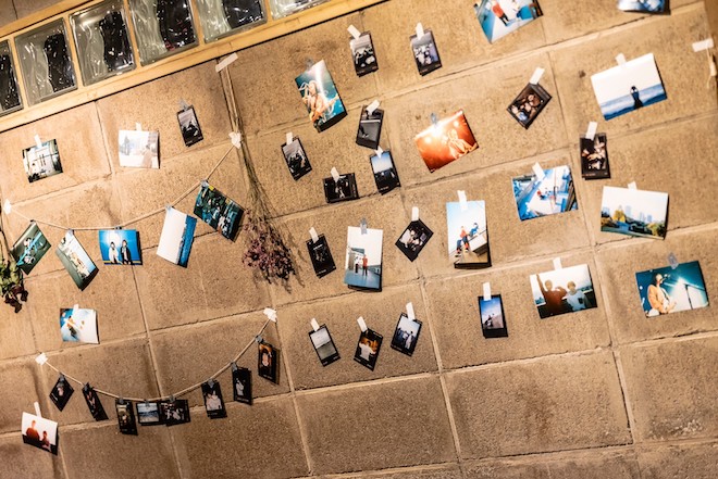 会場内の壁面にはドライフラワーが吊るされ、佐々木(G)により撮影された写真が飾られていた。ステージに目を向けると、スクリーンが下されており、フロアには席が用意され、ライブハウスとは思えないまるで映画館のような光景が広がる。
