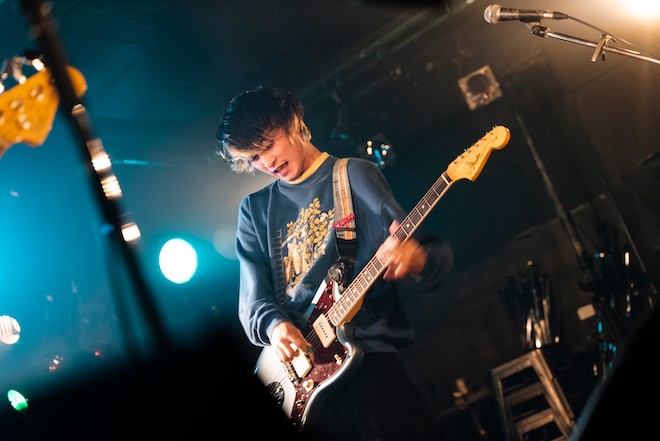 しばらくしていつものthe pulloversらしくゆるりとした雰囲気のMCが始まる。まずはイベント開催のお礼を伝えると、「全部観たかったなあ」と、準備があったため短編映画を最後まで観れなかった悔しさを口にする。続けて「いつもプルオーバーズってライブをしているけど物語の一部になった感覚」と告げる。「ここからはthe pulloversに戻ります」と気持ちを入れ替えると、3rd ZINEの1曲目に収録された「fallen baby」がスタートする。