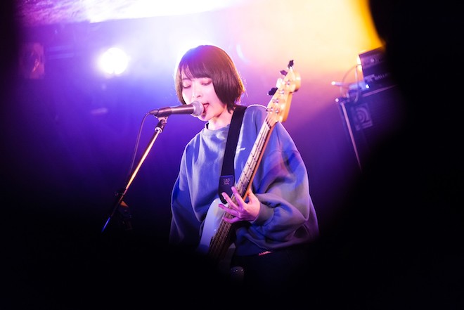 演奏が終わりMCでCettia(Vo,B)が開口一番に発したのは「言葉が出ません」の一言。音源のリリースをZINEという形態にこだわるほど小説が好きな彼女には、エンドロールを生演奏できる今日の体験がそれほど特別なものだったのだろう。