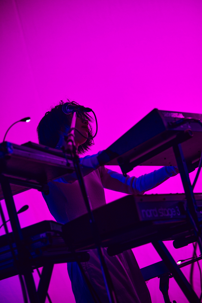 それは、それは、非常に刺激的で濃厚な音楽体験だった。ステージから放たれる、比類なき音楽性を持つバンドサウンドだからこそ現出させられるグルーヴと呼ぶべきそれは、オーディエンスの空間認知と時間知覚にねじれを起こすようにしながらときに深く潜り込むようにうごめき、ときに爆発するように解き放たれ、ときにまったく新しい大衆性というものを提示するようにして会場に渦巻いた。何かものすごい表現の塊を直接的に触れたときに人は固唾を飲んで緊張すると同時に痛快な感覚が込み上げ、思わず笑ってしまうということがあるが、そういった妙趣に富んだカタルシスがこの日のライブにはあった。いやはや、Tempalayは完全に新次元に到達していた。