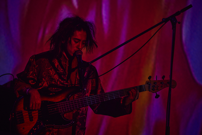 Tempalayは2021年3月に『ゴーストアルバム』をリリースし、その後、5月に全国11都市を回るツアーを実施。さらに9月にはバンドにとって初のCDシングルとなる「あびばのんのん」を発表し、この11月から名古屋、大阪、東京のZeppを巡る<続・ゴーストツアー>の開催に至った。『ゴーストアルバム』という作品は、Tempalay特有のサイケデリアにまみれた音像やリズムの快楽、そして不可思議なポップネスをまとった歌が、日本の古来の祭り事を想起させるようなオリエンタルかつプリミティブな気配をまといながら、「肉体的に死なないために脳内をあの世に飛ばしながら音楽の悦楽にひたる」というようなイメージを浮かばせる作品だった。さらに「あびばのんのん」は表題曲がテレビドラマのタイアップ(テレビ東京系ドラマ25『サ道』エンディングテーマ)という側面を持ちながら、カップリングも含めた新曲群はサウンドにおいても歌の面でもTempalayが次のフェイズに行く前にリラックスしてクリエイトした橋渡しのような役割を担っている印象がある。