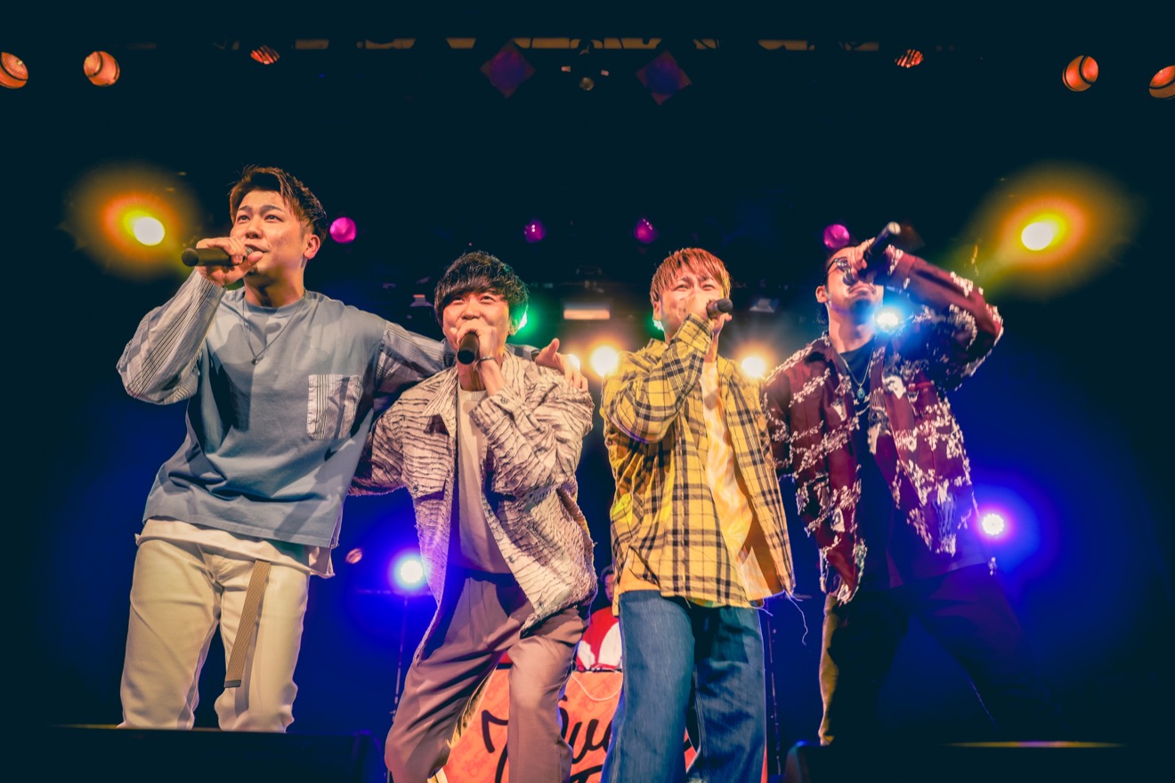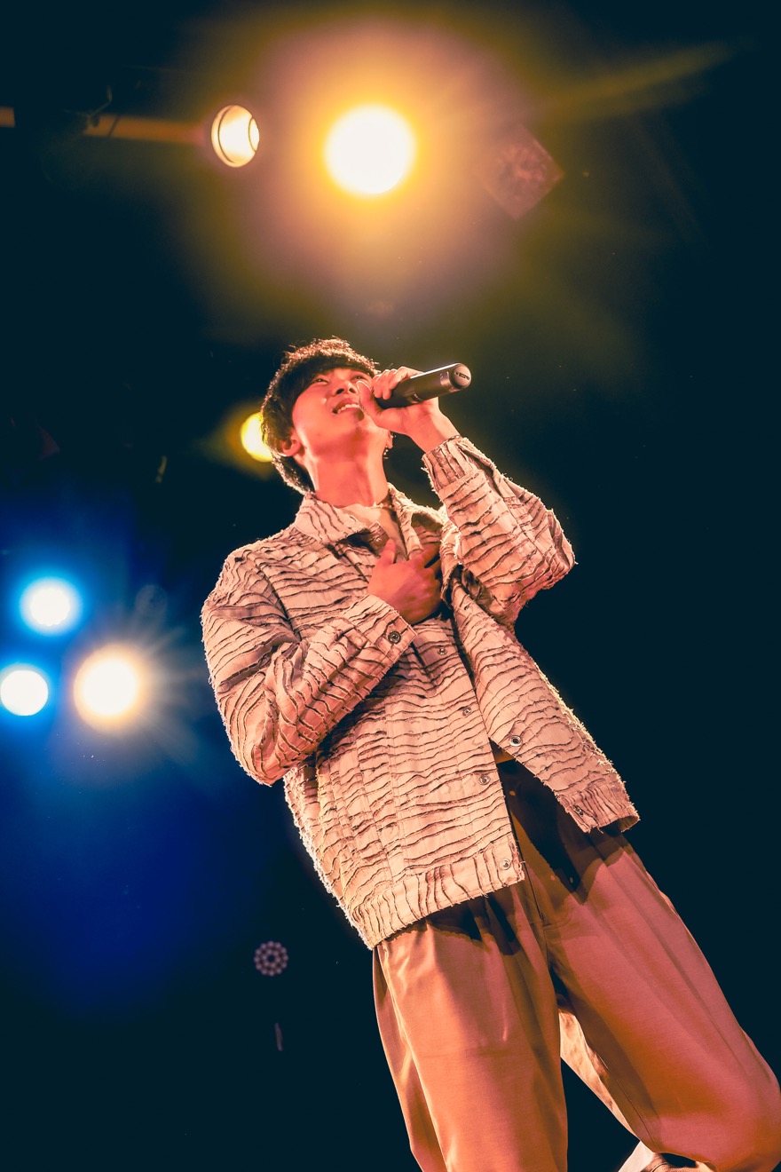 そしてTikTokで続々と動画投稿に使用され、2021年1月にサブスクチャートに浮上した彼らの代表曲「GoodNight」を優しく歌い、途中のMCでは持ち前の関西節が炸裂するトークで笑いとアットホームな雰囲気に。その後も熱が入ったパフォーマンスが進行し「Presents」、「Encore」と駆け抜けると、会場の一喜一憂を誘う。