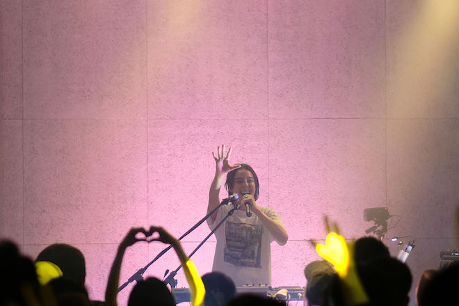 「言葉にならないので、全部音に乗せます」と一言MCを挟むと、AAAMYYYとのコラボ曲でドラムンベースのトラックが刺激的な「It’s So Natural」、続く明るくダンサブルなナンバー「Spider Dancing」ではカラフルな照明と共に会場を一気に温めた。