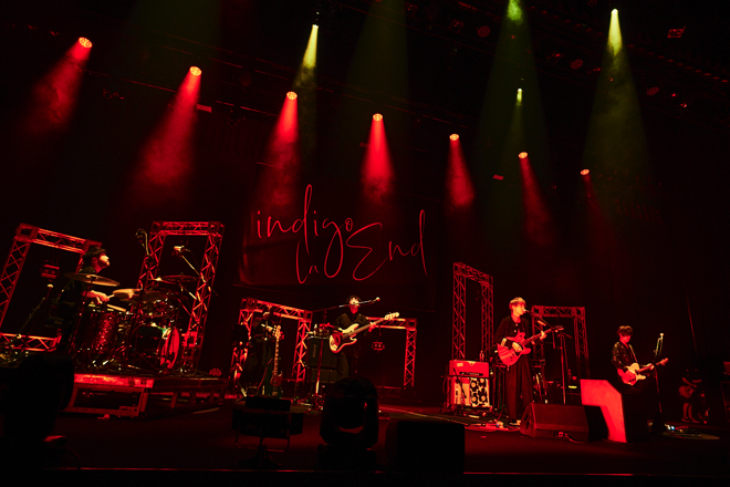 ここで再び映像が流れて、来年11月にバンド初の日本武道館公演が開催されることが発表されると、場内からは盛大な拍手が贈られる。「気負わずに、いつも通りのindigo la Endのライブになると思うんですけど、楽しみにしていただけたらと思います」と川谷が話し、最後にもう一度インディーズ時代の楽曲である「楽園」がひさびさに演奏され、この日ならではの貴重なセットリストのライブが締め括られた。