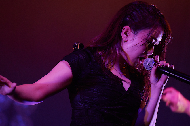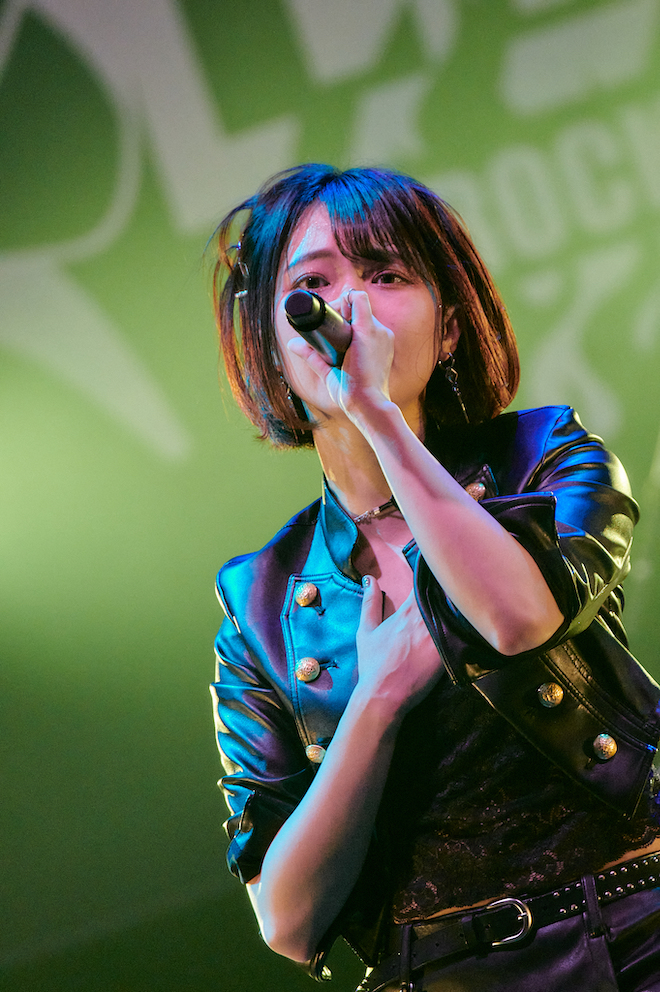 後半戦のライブは、永瀬りかと杉本莉愛をダンサーに従え、なぎさりんが哀切さ抱いた声で「事件File.055」を歌いながらスタート。痛みや悲しみを背負う想いを、彼女は嘆くように歌う。痛みだけではなく、そこに救いを覚えるのは、どんな憎しみや悲しみなどの痛い感情もなぎさりんが大きな愛で受けとめ、抱きしめてくれるからだ。続く「Born to fate」でも、なぎさりんは胸の内に渦巻く苦しい想いへ、少しでも痛みを和らげるように歌声の手を重ねあわせていた。