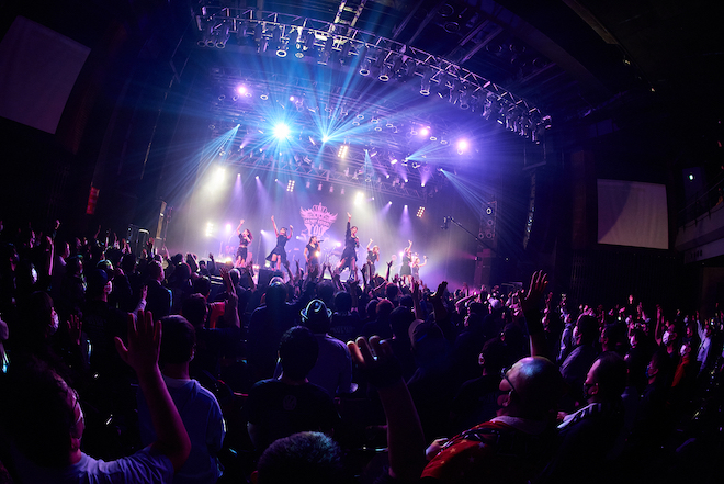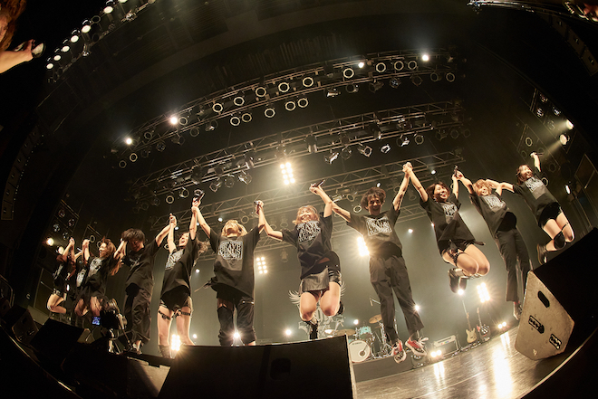 さぁ、唸りを上げた音に乗せ、一緒に熱狂の渦の中でまみれようぜ。彼女たちは気迫あふれる姿で「overdrive」を歌っていた。フロア中の人たちも大きく拳を振り上げ、沸き立つ思いを舞台上へぶつけていた。フロア中から響く手拍子の音が凄まじい。メンバーが、フロア中の人たちが、心のエンジンを奮わせながら沸き立つ思いをぶつけあっていた。互いの熱がスパークした中で生まれる興奮が堪らない。