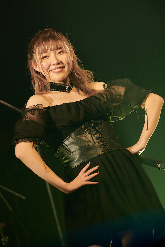 「Dahliaー!」と叫ぶ菜月アイルの歌声がフロア中に響き渡る。ハードエッジな「Dahlia」の登場だ。荒ぶる歌声は、彼女自身の心に渦巻く激情した思い。沸き立つ気持ちのまま、ときに台の上に足を乗せ、思いきり身体を折り畳み、菜月アイルは歌いあげていた。熱情したその声に心が奮いたつ。
