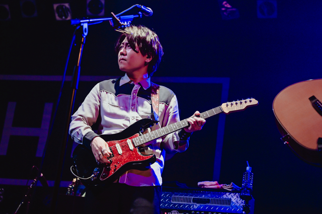 「大阪のみんな、ただいま! 地元大阪で、初めてのZepp Osaka Baysideでファイナルを迎えることができて、とてもうれしいです。ここにいる皆さんと、配信を見ている皆さんと一つになって、最高の思い出を作って帰りましょう!」と、服部が約2カ月にわたる旅路を経てたどり着いた終着点の景色に万感の想いを告げ、広瀬臣吾(B)のずっしりとしたベースラインが導くアーバンでアダルトな「Ugly」、エレクトロなフレイバー漂う「Delete/Enter」で大胆不敵に攻め立てたかと思えば、「Night Owl」のはかないピアノが切なさを増幅させ、見る者を一気に心の深淵へと連れていく荘厳なサウンドスケープで圧倒。「If」や「So Bad」では自ずとクラップが沸き立つ温かなムードがフロアを埋め尽くすなど、緩急自在の楽曲群でZepp Osaka BaysideをSHE’Sの世界観に染め上げていく。