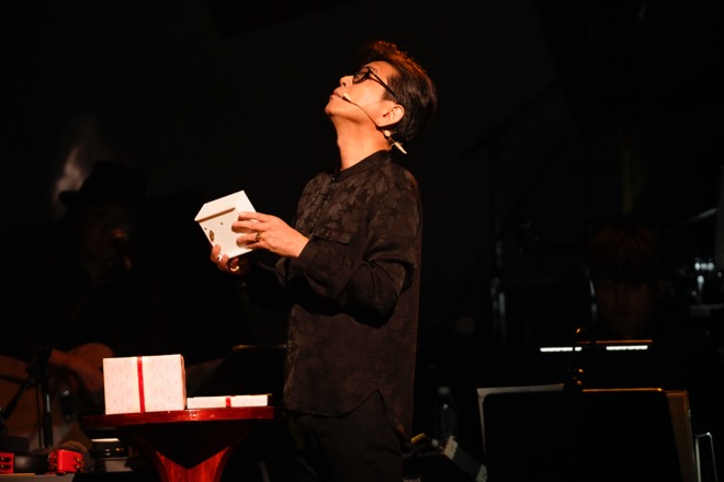 アンコールまで含めて約2時間半。中盤の「星に願いを」では絵本の中に誘われるようなファンタジックな演出があったかと思えば、「月の砂漠」では荒涼とした情景を聴く者に想像させるなど、ときに真摯に、ときにコミカルに、フミヤは全曲の物語を雄弁な語り口でストーリーテラーとして紡いだ。その物語の中でオープニングからエンディングまで、十音楽団が奏でる演奏に惹き付けられ、フミヤの大人の魅力たっぷりな艶っぽい歌声に酔いしれた。この特別なコンサートは、藤井フミヤというアーティストの持つ表現力と歌唱力の高さがあるからに他ならない。そして、タイトルである「青いレーベル」の意味、発せられたメッセージが余韻とともに胸の奥に残る素晴らしいステージだった。