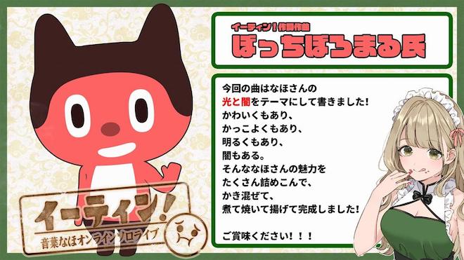 ぼっちぼろまる作詞作曲の「イーティン!」は、オリエンタルテイストを散りばめたキャッチーなメロディが印象的なアップテンポな楽曲。2019年リリースのソロ曲「培訓課程」での中華風サウンドとの親和性も感じる楽曲になっている。