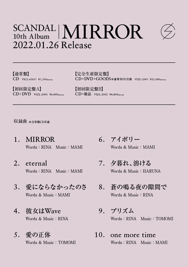 2022年1月26日発売 SCANDAL New Album 『MIRROR』