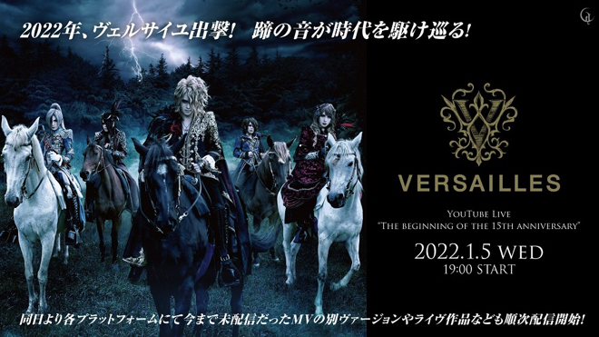 2022年に結成15周年を迎えるVersaillesが、1月5日に「The beginning of the 15th anniversary」と題してYouTubeで生配信を行うことが決定した。