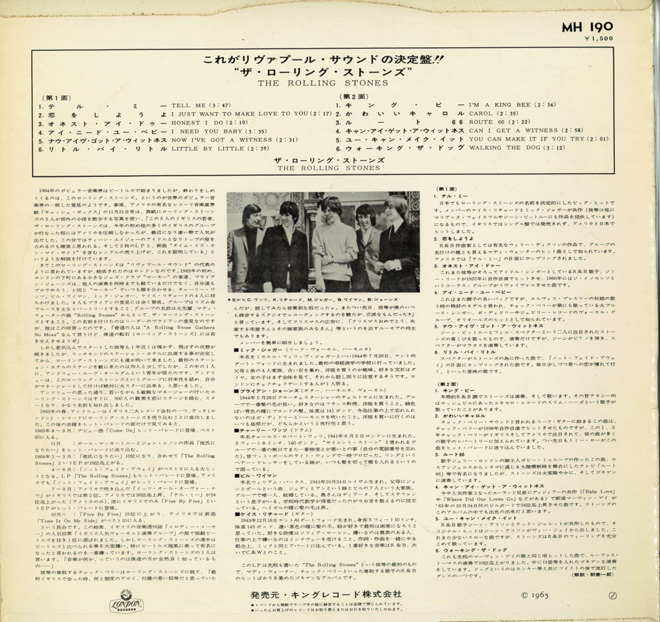 ▲日本盤ファーストLPバック・カバー from Mike‘s Collection