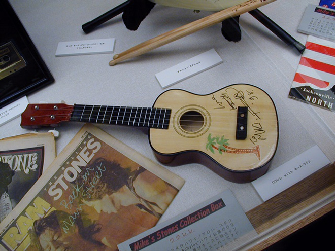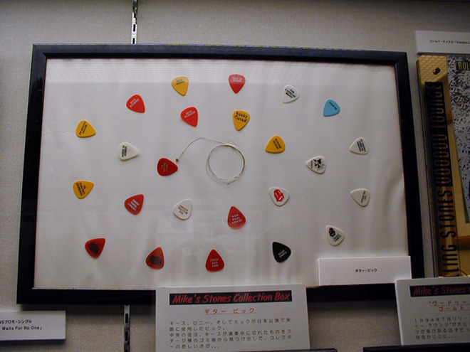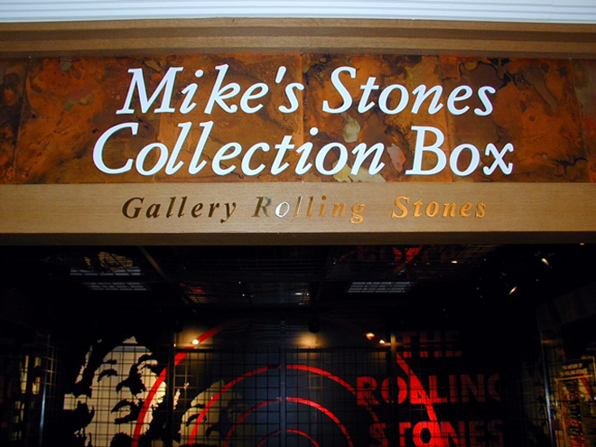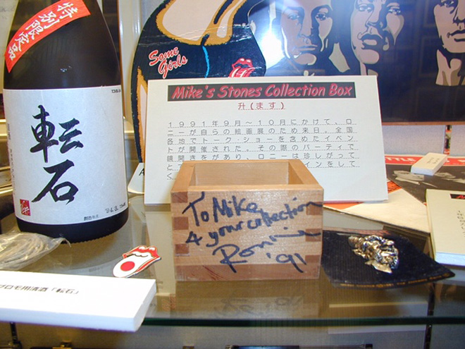 僕はストーンズ・グッズ・コレクターではないけどモノステ派ではないので50年以上ファン&業界人しているといろいろとたまる。そんなグッズをPARCOほか全国のイベント会場で何度か短期間公開させて貰ったことがある。2000年11月名古屋市栄にオープンしたマナハウス(現ダイテックサカエビル)では1年半以上に亘って“Mike’s Stones Collection Box”無料展示した。この機会にその一部をご紹介させて貰う・・・。