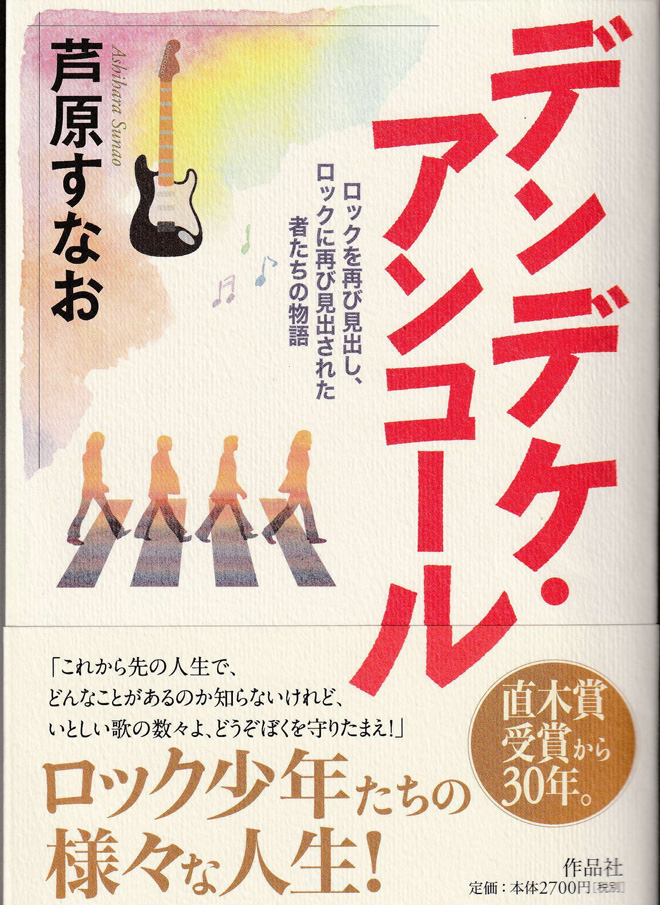 1991年、芦原すなおの小説「青春デンデケデケデケ」は直木賞を獲得した。60年代中期、四国の高校生ちっくんこと藤原竹良はベンチャーズ のエレキ・サウンドに打ちのめさせられ、そこでバンドを結成しロックなハイスクール・ライフを楽しむ。全国でエレキ・ブーム旋風が巻き起こっていたあの時代の青春音楽物語。ベンチャーズ の他ビートルズやストーンズやエディ・フロイドまで登場するこのブギーな作品は翌年、故・大林宣彦がメガフォンを撮り映画化された。その頃だと記憶しているけどベンチャーズ 来日公演パンフレット掲載用に僕は加山雄三、渚ゆう子etc多くのベンチャーズ ・フリークにインタビューしたけど、芦原すなおもその一人だった。以来、同年代の芦原とは“仲良し”になり、近年マイ・トーク・イベントfeatベンチャーズ にもお呼びしたこともある。そんな彼から“著者サイン入り”新刊書籍が届いた。『デンデケアンコール』(作品社)である。