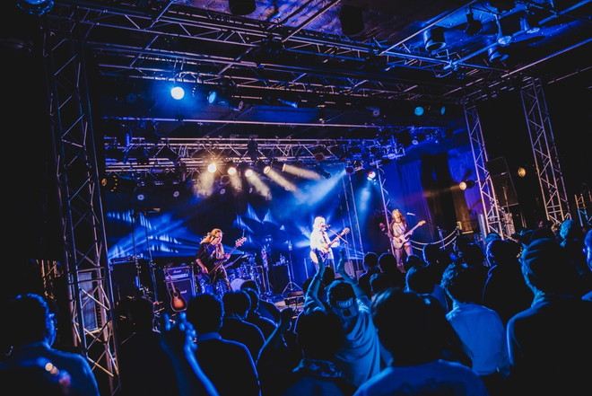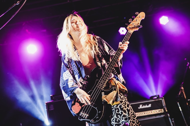 スティーヴィー・レイ・ヴォーンやジミ・ヘンドリックスに比される同道のプレイがリードしたかと思うと、すぐさまボトムに響くのは葛城の手数の多いテクニカルなプレイ。主旋律を尊重しながら、時にはそこに踏み込むことでさらなるグルーヴを生み出す。冒頭3曲にして4人は肉体的なアンサンブルによってバンドのプロフィールを言葉よりも明らかにプレゼンテーションしてみせた。