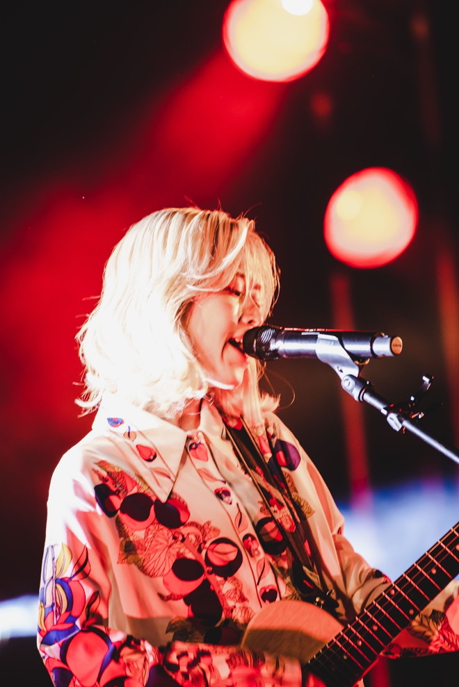 そんなMCとともにプレイされたのは「521km」。シンガーソングライターのコレサワが楽曲提供を行った楽曲だった。親しみやすい甘いメロディを歌い上げるロク。そんな彼女の裏、3人が見せたプレイはここまでのライブでのそれとは真逆となるシンプルなバッキングだった。あくまでバンドの核となるのはロクの歌。メンバー同士の強い絆を感じさせる演奏にはこの日一番の緊張感が立ち込めた。