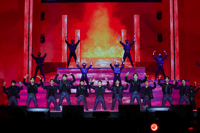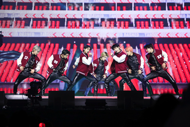 <2022 Weverse Con>のエンディングはSEVENTEENが飾った。 2017年にリリースした2ndアルバム『TEEN, AGE』のタイトル曲「CLAP」で始まったSEVENTEENは、ダンスブレイクやバンドバージョンの編曲など多彩な構成で「HIT」「Ready to love」「To you」「Together」「Left & Right」を熱唱した。 強烈さと清涼さが調和したパフォーマンスを披露したSEVENTEENは「Rock with you」のステージを最後に久しぶりに行ったオフライン公演を熱い熱気の中で締めくくった。