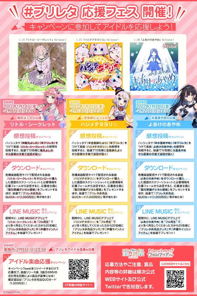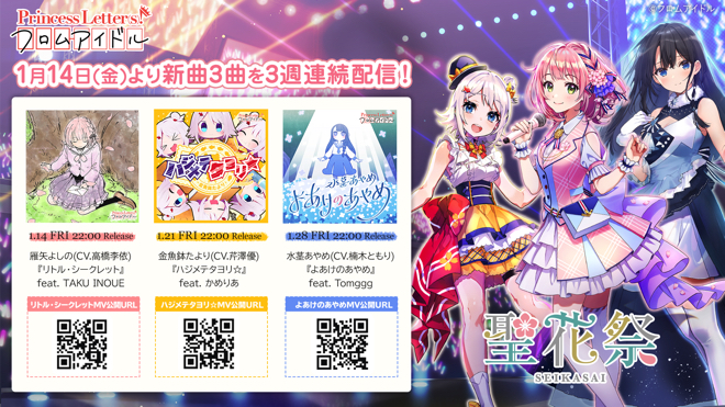 “アイドル楽曲”の連続リリースに続く形で、物語の第1章となる「聖花祭」編が1月29日よりスタートする。物語を展開する『プリレタ』の新たな試み、“ポエトリードラマ”の公開スケジュールは1月下旬に発表される予定となっている。