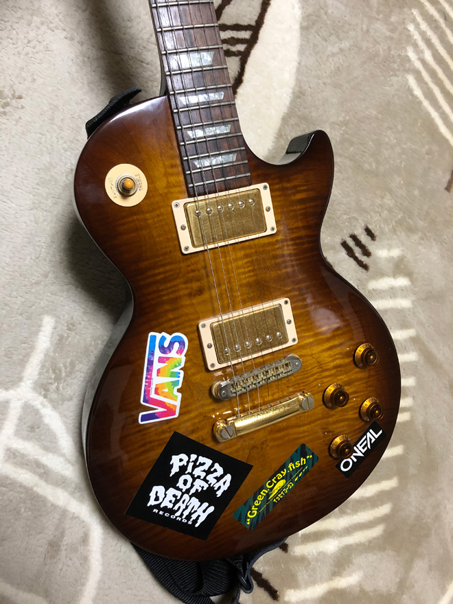 そんな時レスポールスタジオプラスを発見しました。スタジオモデルなのに虎目が出ていてカッコいい!コレなら今の自分にピッタリだと思いました。買ってからは毎日練習しています。