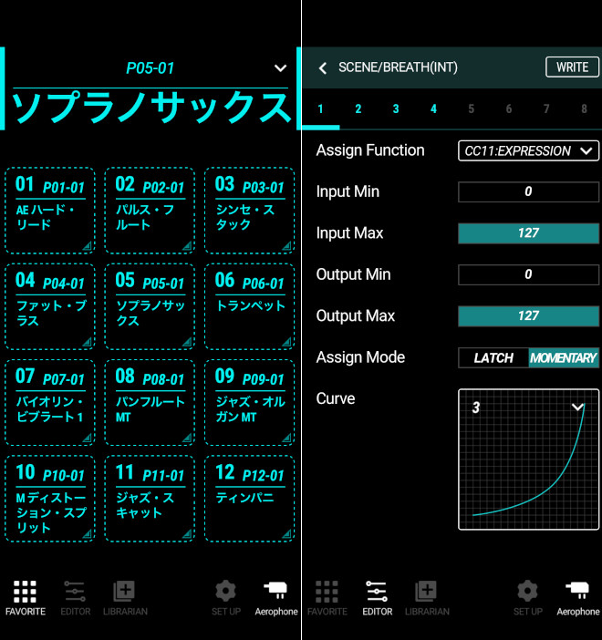 『Aerophone AE-20』は、265種類の幅広い音色を内蔵。サックスやトランペット、フルートなどの特有の奏法まで実現するリアルで生々しい多数の音色は、管楽器演奏家からの意見を取り入れながら作成。バイオリンなどの弦楽器、尺八や二胡など民族楽器の表現力豊かなサウンドのほか、多彩な楽器の音色を用意。さらに、ライブ・ステージや楽曲制作にも活躍する、ローランド最新の「ZEN-Coreシンセシス・システム」によるシンセサイザー音色も搭載。サックスの深みのある豊かな表現から、フュージョンなどで使われるようなシンセサイザーの速いフレーズまで、吹奏楽器ならではの表現を実現する。