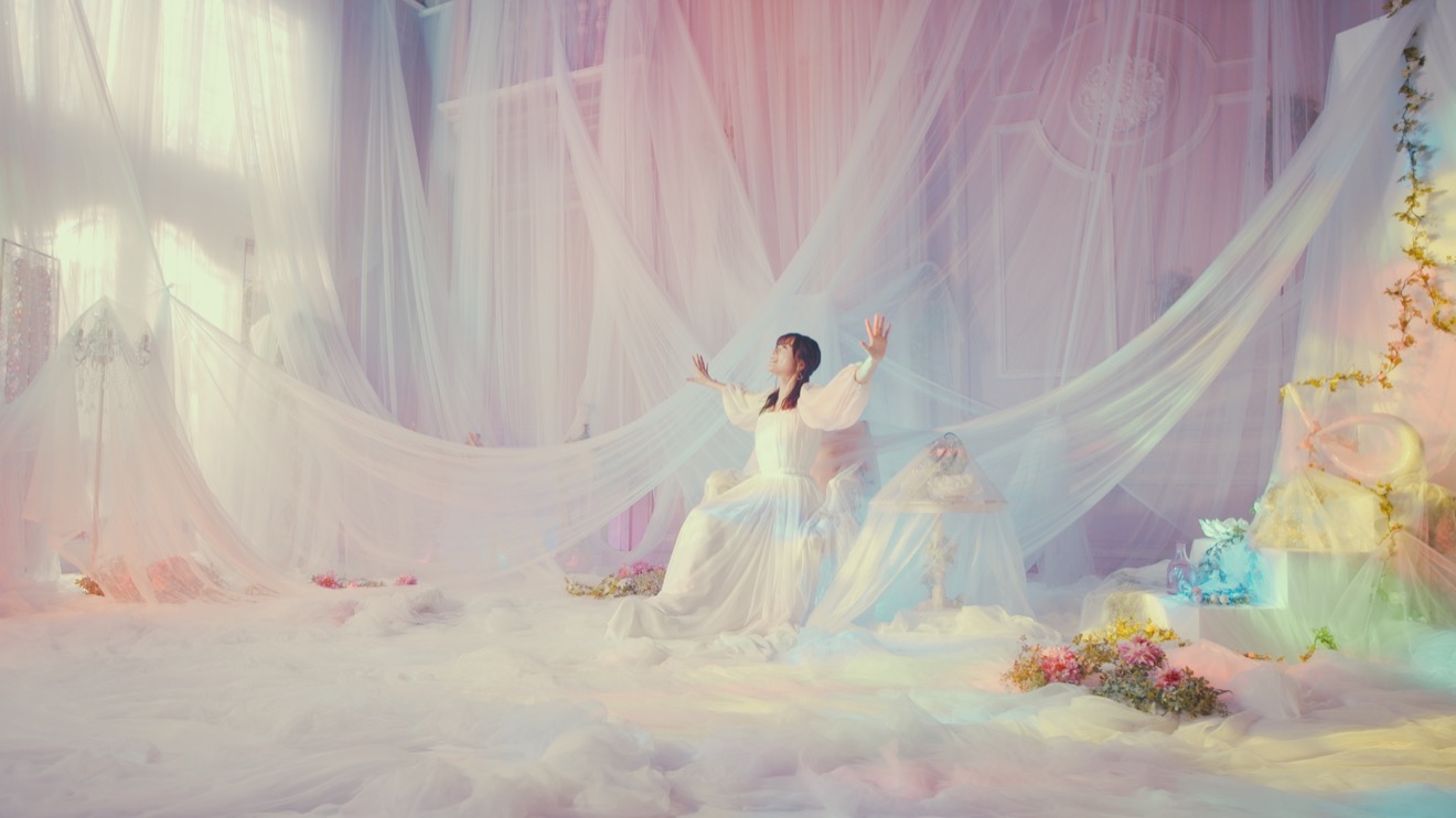また、本日公開されたMUSIC CLIPでは、白いドレスに身を包み笑顔を浮かべるチャーミングな姿と、黒くシックな装いでクールな表情を浮かべる水瀬いのりの姿を見ることができる。ステンドグラスから射し込む光や、クリスタルの反射が幻想的な仕上がりとなっており、また2人の水瀬が鏡合わせの自分に問いかけるように歌うシーンも見どころだ。