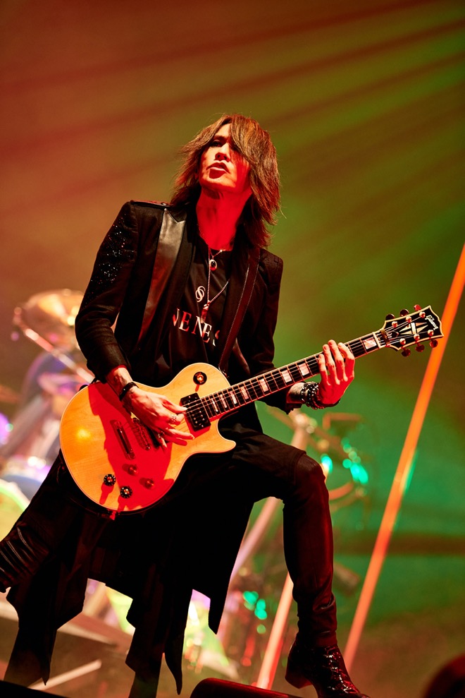 「みんな、どうもありがとう! 2年間、真矢くんが言う通り、いろんなことが起きましたね。俺たちメンバーもイライラして“ライヴどうなるんだよ?”とか、“前に進んでいくためにどうしたらいいんだろう?”って考えたり、そんな中、立てていたプランが崩れていったり、みんなにすごく不安な想いもさせただろうし、でも、俺たち信じる気持ちを学んだような気がします。ツアー中にいろいろ話して、ライヴってホントに最高だなって思いました。実際、俺たち、ライヴしかないんです。小さなライヴハウスから30年経って、ここで演奏できて、みんながいてくれるから、この瞬間を迎えられたと思います。そして、今回のツアー、いちばん大変だったのはスタッフのみなさんだったと思います。RYUICHIがいろいろ発表したよね。最後まで彼が走り抜けられるようにみんなでパワーを送ってください。頼んだぜ!」──J