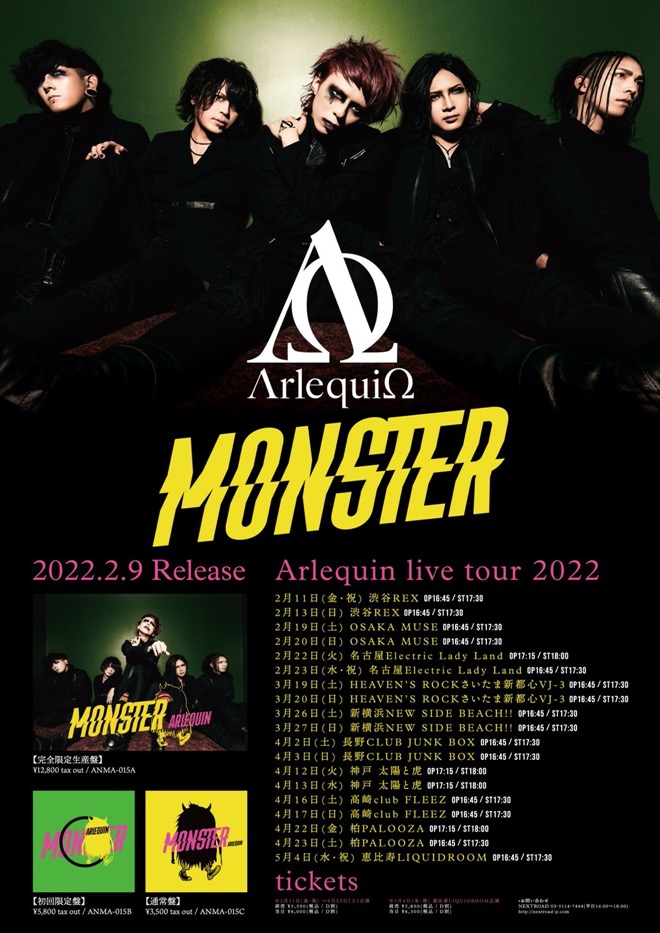 アルルカンが2月9日、4thフルアルバム『MONSTER』をリリースする。同作は、コロナ禍においても歩みを止めることなく、創作活動やライブ活動を続けてきた彼らの現在が詰め込まれたものだ。