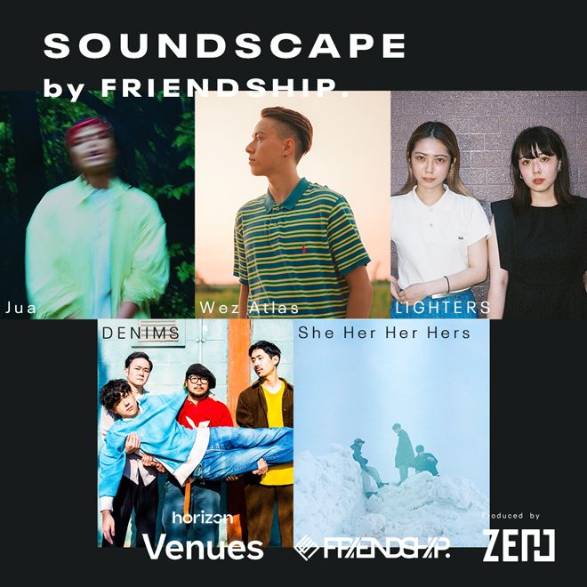 「SOUNDSCAPE by FRIENDSHIP.」にWez Atlas、JUA、LIGHTERS、DENIMS、She Her Her Hers出演