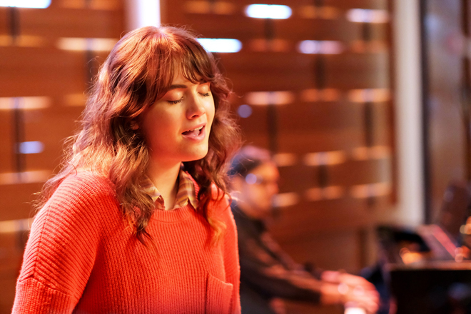 エミリアが劇中で伸びやかな歌声を披露していることも話題の一つだが、なんと「歌のレッスンを受けたのは、今回が初めて」だという。しかし、彼女の父が歌手だったため、常に近くに音楽があったという。「ずっと歌は歌っているし、歌が大好きなの。でもプロとして歌を歌ったことは一度もない。(本作のオーディションでは)フリートウッド・マックの『ランドスライド』という歌で、ギターの弾き語りでオーディションに挑んだの。とても、静かで繊細な曲。でも、(役が決まって)最初の歌のレッスンの時に、エタ・ジェイムズの歌を渡されて、耳を疑ったわ。気が遠くなった」と笑顔で話し、しかもその後「現場で、音楽プロデューサーのニック・バクスターとマリウスに会って、『(劇中に登場する)聖歌隊のメンバーのほとんどは、バークレーの音大から来たんだよ』と言われて、『え? 本当に?』という感じだった」と、衝撃を受けたことを告白。「私はその中から(歌の才能のある生徒として)V先生に選ばれるという設定なのに。(説得力のある歌が歌えるかどうかが)本当に気が遠くなったわ」と当時を思い起こした。