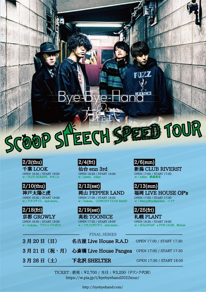 また、リリースツアー<SCOOP SPEECH SPEED TOUR>の2月公演分の対バンも解禁。詳細はオフィシャルサイトをチェックしてほしい。