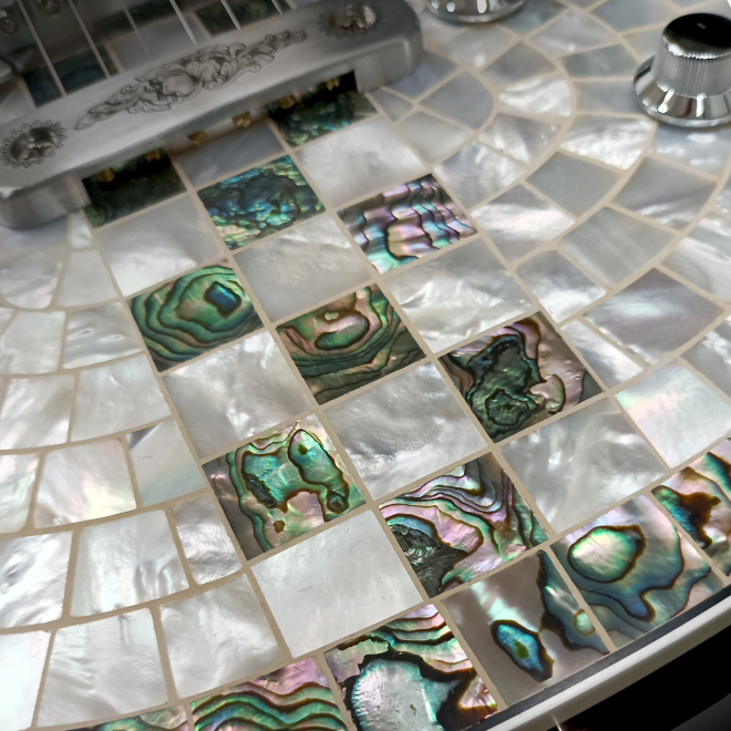 ゼマイティスが、ヘッドストックにもシェル装飾を施し、アローヘッド型のエンブレムを採用、トップにシェル装飾を用いたモデル「THE PORTRAIT Pearl Front Ring Chess」を2月1日に発売する。