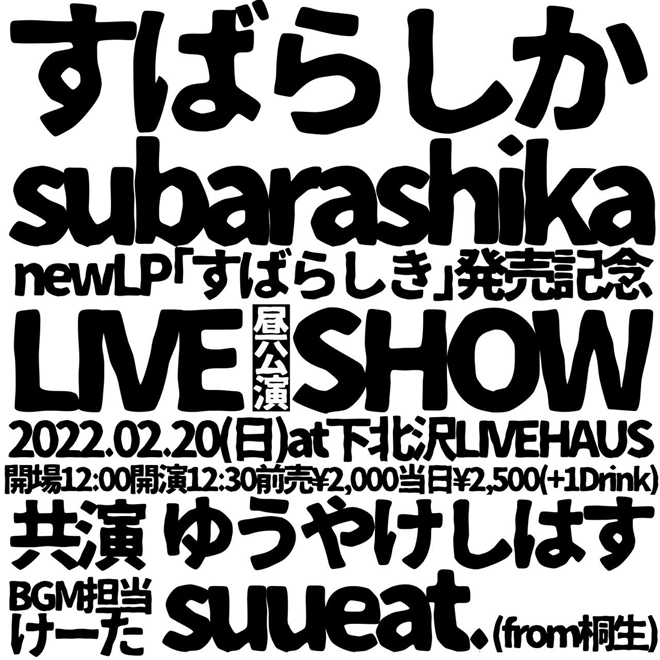 また、アルバムよりリード曲「君の文字」のリリックビデオを公開。そして、ニューアルバム発売を記念したレコ発企画を2月20日(日)に下北沢LIVEHAUSで開催することが決定。共演は、元メンバーの林率いる“ゆうやけしはす”と桐生から“suueat.”の二組だ。