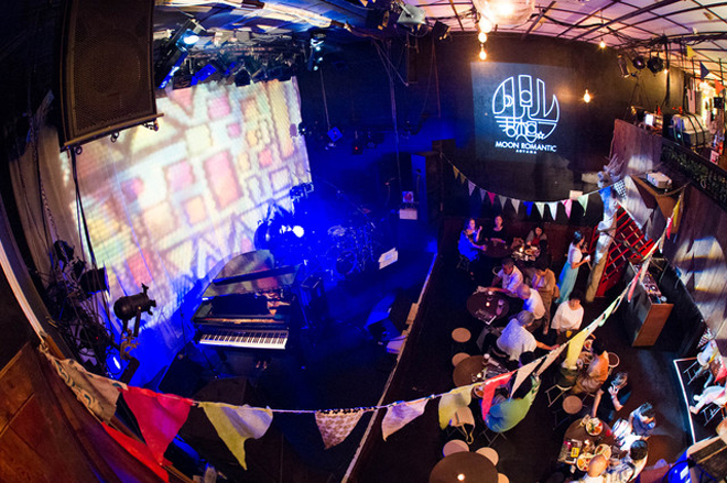 本ライブは月見ル君想フにグランドピアノを搬入して開催するスペシャルイベント<Grand Piano Night 2022>の一環。煌々と輝く満月のもと、生木の装飾を施した幻想的なステージで、外気を循環させて換気を十分にし、息苦しさを感じない吹き抜けの空間で安全に公演を楽しめる。