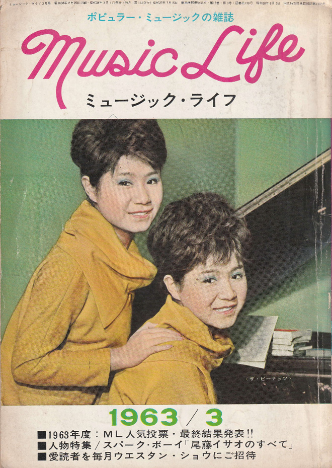 僕は1962〜3年頃から音楽雑誌「ミュージック・ライフ」を愛読していた。直ぐ取り出せる63年3月号は表紙がザ・ピーナッツ。先日のMUSIC LIFE CLUB出演の際もちょっと触れたけどその頃の同誌フロント・カバーは坂本九や弘田三枝子といった邦楽アーティスト。これまた手元にある63年11月号でジョニー・ソマーズが表紙に登場した。このML(僕らはこの頃から同誌をエムエルと称していた)両方を懐かしくパラパラしていると“スターの花かご”という4頁のコラムを担当していたのが湯川れい子さんだった。僕はこの頃かられい子さんファンを自称していた。