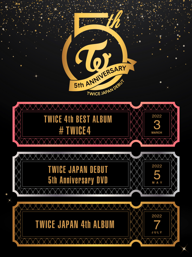 TWICEはオフィシャルサイトで「ONCEの皆さん、遂に私たちTWICEは日本デビュー5周年を迎えます!5年間の活動の感謝を込めて皆さんに楽しんで喜んで頂けるプロジェクトを沢山用意しました♪2022年も、沢山楽しみましょう!これからもずっとそばに居てください」との手書きメッセージとティザー映像を公開。また、日本デビューベストアルバム『#TWICE』(2017年)のビジュアルでSHIBUYA109をジャックした。
