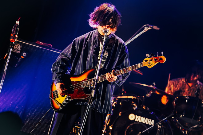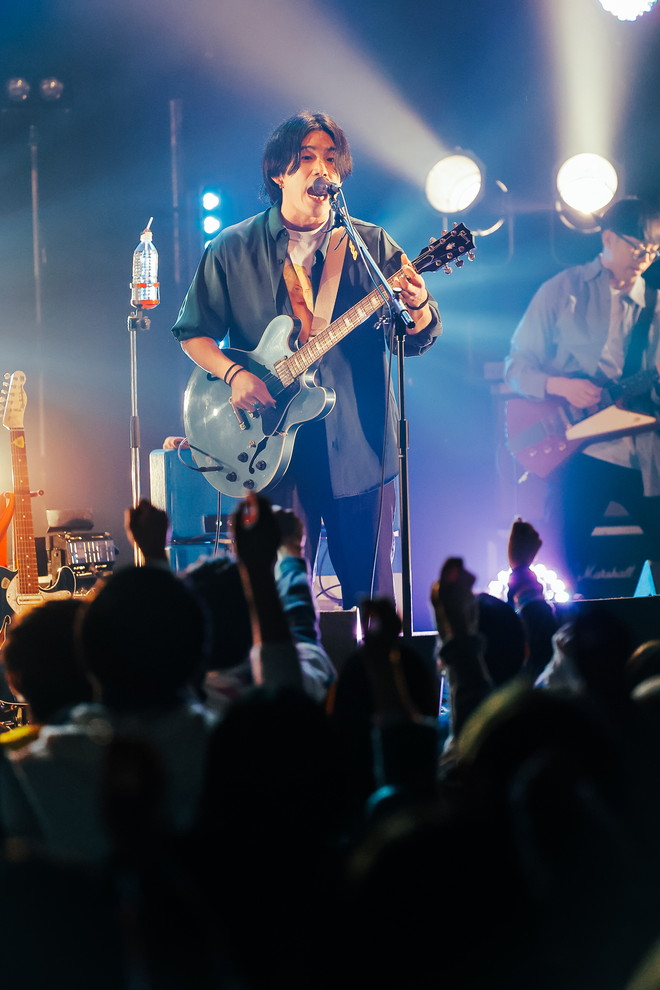 それを象徴するようなオープニングナンバー、「イズミフチュウ」でライブはスタート。2018年リリースの過去曲ではありながら、地元、和泉府中での大切な人との別れを歌った、最新EPへと繋がるテーマを内包した楽曲だ。やわらかな歌声にじっくり聴き入るような始まりは新鮮だった。そして続く「ルート26」でのドライヴするロックサウンドに、一気にギアが上がる。さらに続けざまに歌い出した「Shunari」には、フロアからハンドクラップも沸き起こる。