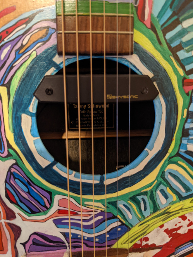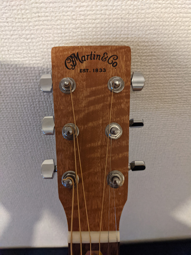 ヘッドのマーチンのロゴがブラックなのもクールで気に入っています(^^)。ピックアップは、購入後にskysonicのT902を取り付けました。今後ライブでも使って行きたいです。