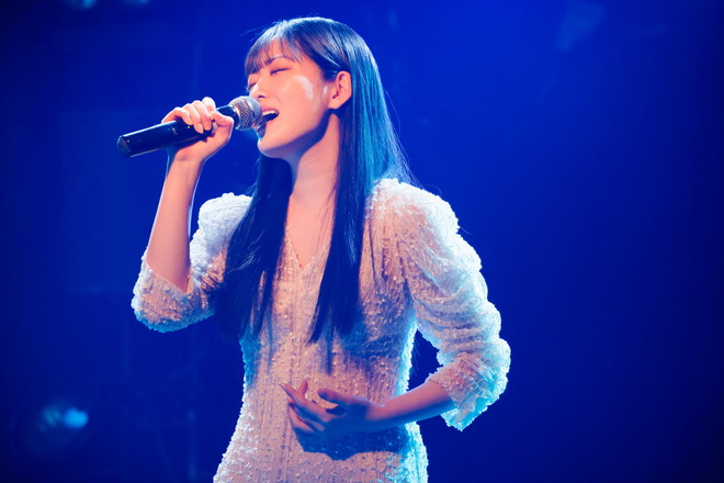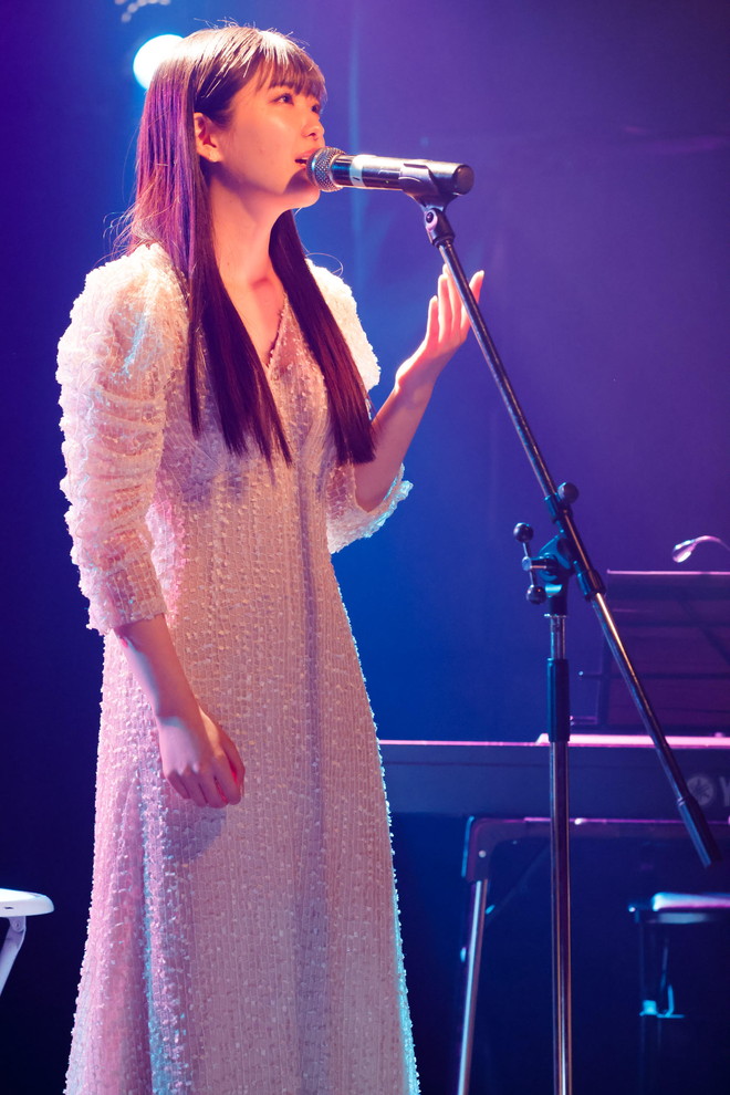 ライブでは、全国のラジオ局でパワープレイとなったデビュー曲「白馬の王子と薔薇色の私」をはじめ、高校2年生の時に出場したNHK『のど自慢』で歌唱し、見事チャンピオンとなった「みんな空の下」(オリジナル歌唱・絢香)や、先日放送されたテレビ東京『THEカラオケ★バトル』での歌唱が話題となった「Precious」(オリジナル歌唱・伊藤由奈)といったカヴァー曲など、デビュー曲を手掛けた一青窈が“ホーリーボイス”と称した透明感溢れる歌声で全10曲を披露した。