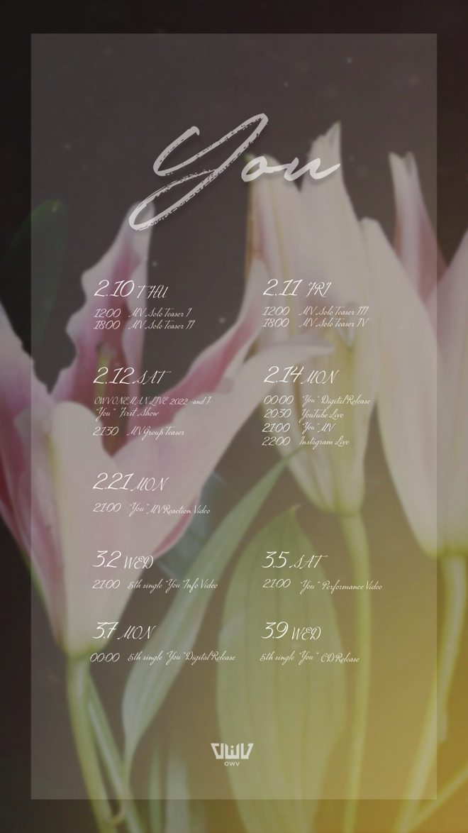 OWVが3月9日にリリースするニューシングル「You」のジャケット写真と新しいビジュアルが公開された。