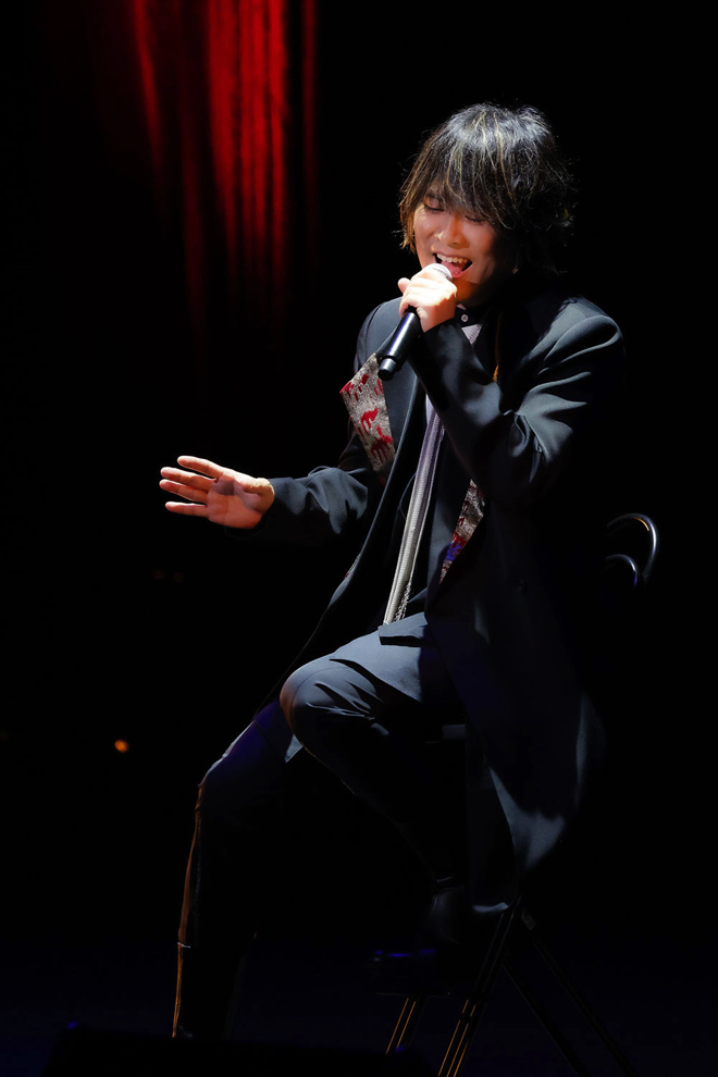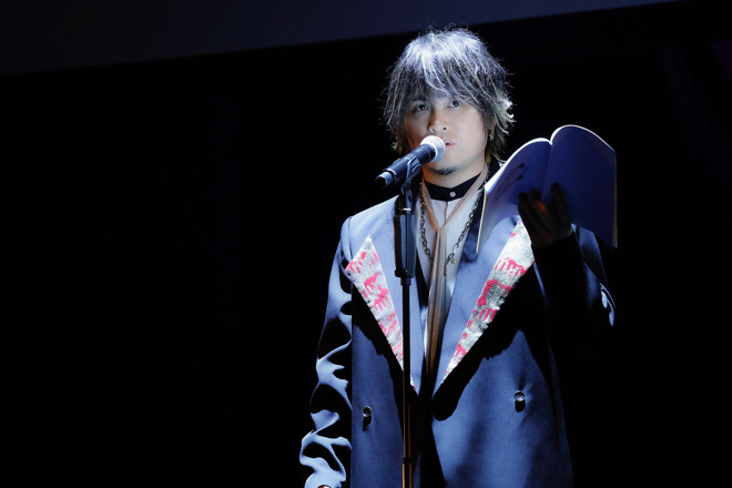 ここからはふたりによる朗読劇。近藤が演じる陽キャでコミュ力お化けの「流星(りゅうせい)」と、小野が演じる陰キャなアニメオタクの「勉(つとむ)」の幼なじみコンビが、卒業旅行で沖縄へ行くというストーリー。台本はあるものの、いざ朗読劇が始まるとアドリブの嵐。声優仲間のモノマネから始まり、月9ドラマ、『キン肉マン』や『魁!!男塾』、『美味しんぼ』などの漫画、菅原文太ら往年の名優、フォークソンググループのアリスまで、あらゆる昭和文化が飛び交う抱腹絶倒の朗読劇に、会場は大きな拍手と堪えきれない笑い声で包まれる。あまりにコアな昭和ネタに不安を覚えた近藤が「アリスを知っている人がどれだけいるのか」と心配する一幕も。このハチャメチャな朗読劇については小野も「あれは映像に残しちゃいけない。皆さんの記憶の中だけに留めてください」とエンディングで釘を刺すほど。ともかくも、この最高に自由で奔放な朗読劇は最高の盛り上がりをみせ、ファンを湧かせたことは間違いない。