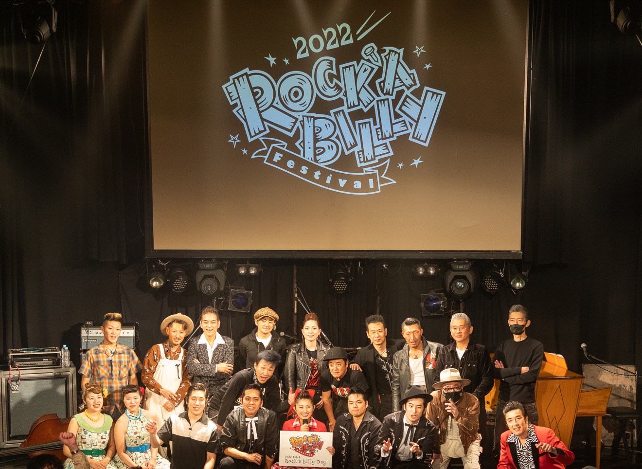 すべてのアクト終了後、その合間でフロアをゴキゲンなナンバーで沸かし続けたDJ陣(DJ Ryuta、DJ RAW-HIDE、DJ AKIRA、DJ COBRA)含む出演者全員をステージに呼び込んだのだが、その誰もが満面の笑みを浮かべており、ロカフェスが持つホープフルなムードを物語っていた。この日は新しいロカビリームーヴメントを起こす為の大きな一歩になったと言えよう。次回は、2023年2月8日に開催。それまでに日本のロカビリーシーンがどのような成長を遂げていくのかも含め、実に楽しみだ。