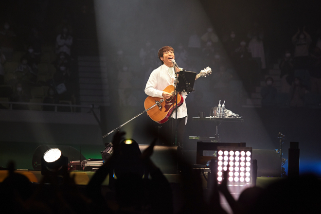 「何かとムズかしい世の中ですけど、また会えたらいいなと思います」と言って披露したのは「おかえり」。後奏のストロークではまだ曲が終わっていないのにも関わらず自然発生的に起こった拍手の波が武道館を包み込んだ。