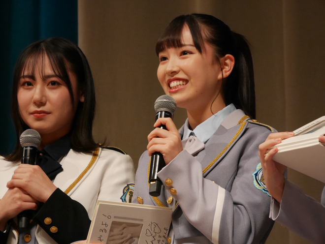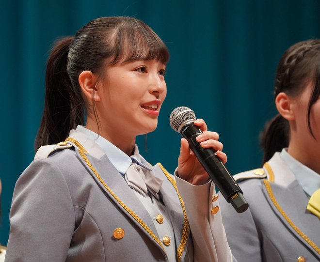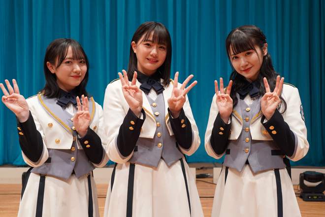 佐竹から、まずトライアングルセンターの三人に一言ずつセンターに選ばれた意気込みを聞かれると中村は、「びっくりしてるんですけど、初めてのことなのできっとわからないことや至らないことばかりだと思います。みんなで素敵な作品を作れたらと思うので一生懸命がんばりたいと思います」、瀧野は「ダブルセンターとか4人のセンターは今まで聞いたことはあるが、トライアングルセンターというのは48グループ初かと思うので、STU48として新しい挑戦ができることを本当に嬉しく思っています。私達3人が三本の矢となってSTU48の6年目も引っ張っていけたらと思います」、石田は「STU48の6年目は奈々さんが兼任解除となったり、いろいろと変化があると思いますが、みんなで頑張りたいと思います。8枚目シングルもよろしくお願いします」とそれぞれでコメントを残した。