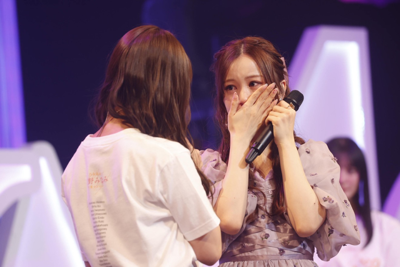 パフォーマンス終了後のMCでは、キャプテン:秋元真夏と樋口日奈がオープニングにも関わらず、既に涙を流しながらのトーク。10年間を共に歩んできた星野のラストステージを噛みしめてのものだが、1期生同士の絆が改めて伺えた瞬間でもあった。