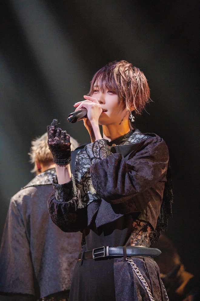 続く「千年恋歌-五月雨-」「モノクロレター」は、歌詞の情景に相応しい、あきとシヅキのしっとりとした歌声が印象的。一転、「本格中華君攻略法」では、メンバー各々のカンフーポーズから曲が始まると、双極らしいエネルギッシュなパフォーマンスで、ファンを惹きつけた。さらに「神と下剋上」「Call of Destiny」の息の合ったダンスに加え、田嶋はると禊のラップも良いスパイスとなり、深みを増したステージへ。会場中を巻き込みながら、一年の活動の集大成を存分に見せつけた。