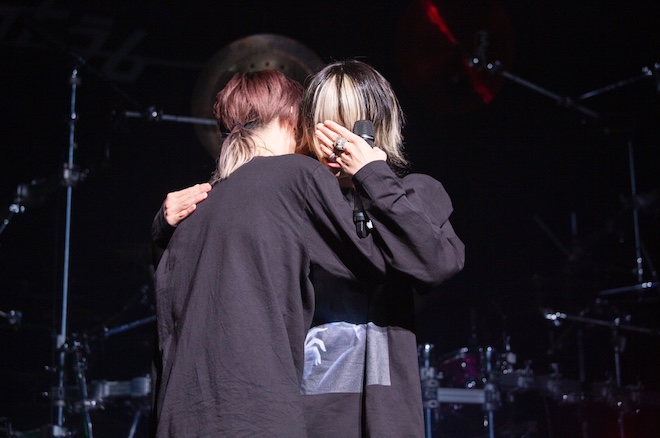 しかし、そんなことはお構いなしで耳元で話し始めるあきと、涙を見せぬよう、ずっと手で顔を隠し、あきの言葉を聞いたあと無言でステージからはける禊。いつもMCでふざけている双極メンバーがこうした姿をライブで見せるとは想像していなかっただけに、驚きと感動が押し寄せる。