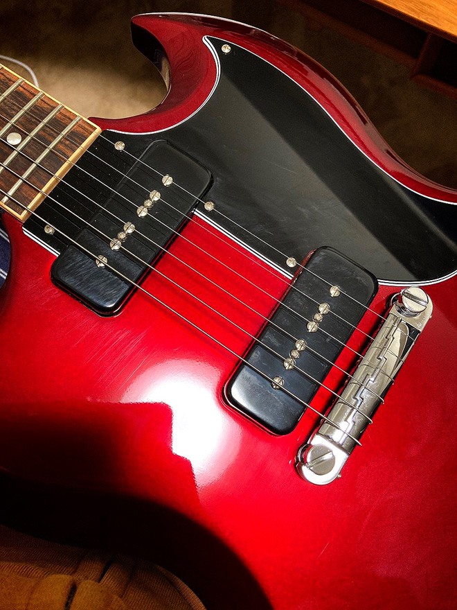 ひささん、あんた最高だよ。バンギャの進化形態のひとつに「ギタリストになる」という分岐路があるなんて、素敵すぎるじゃないか。そしてこのSG、最高にかわいい。ヴィンテージ・スパークリング・バーガンディというスペシャルカラーなんですよね。買ってから調べるという衝動優先の行動も100点です。だって、そういう気持ち先行の振る舞いから、自分でも予測できなかった素敵な人生の旅路が始まるんですもの。輝く人生の宝って、そういうところにあるんだと思ってます。(JMN統括編集長 烏丸)