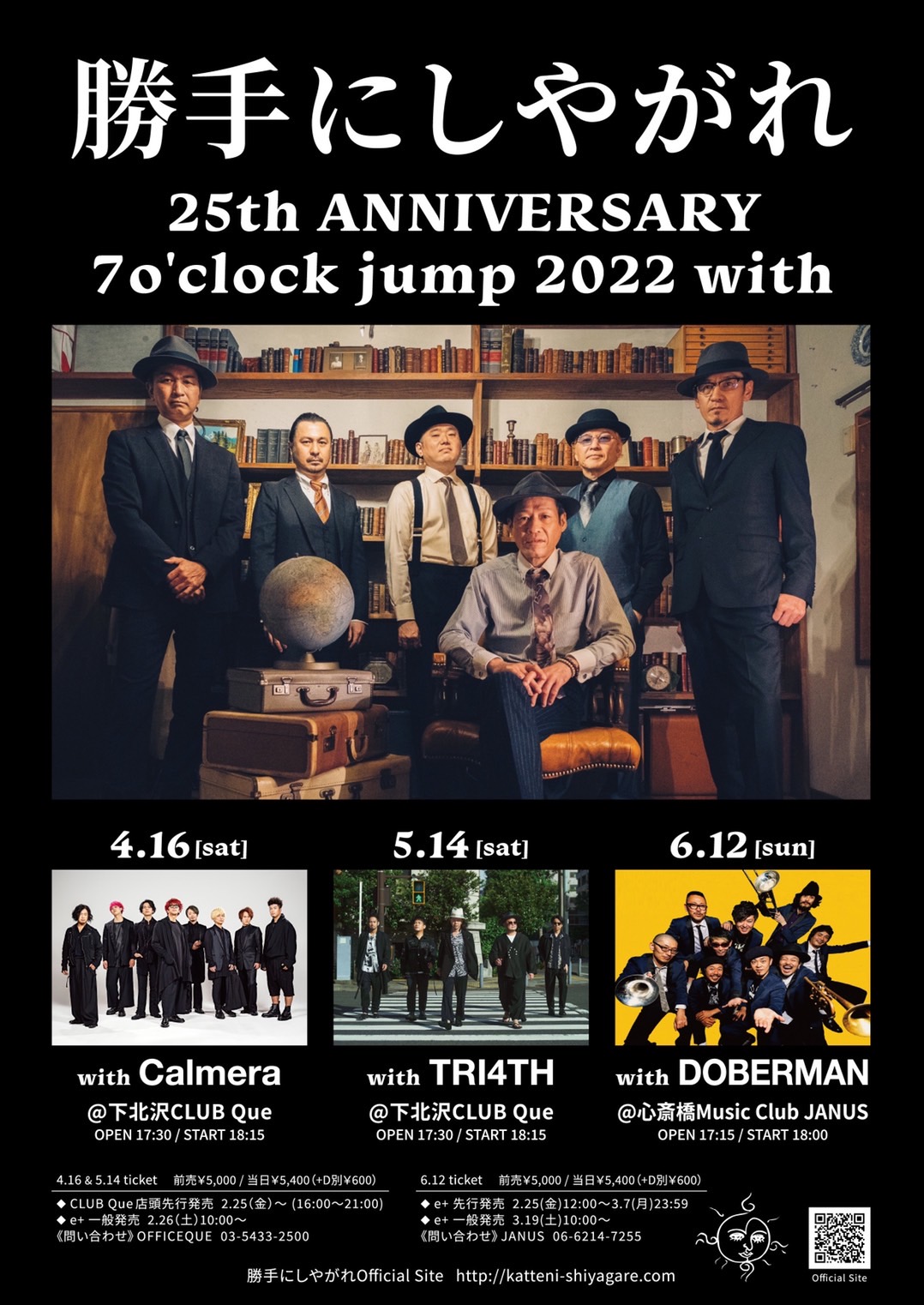 勝手にしやがれが、結成25周年を記念したスペシャルツーマンライブ<25th ANNIVERSARY 7 o’clock jump 2022 with>を3公演にわたり開催することが決定した。